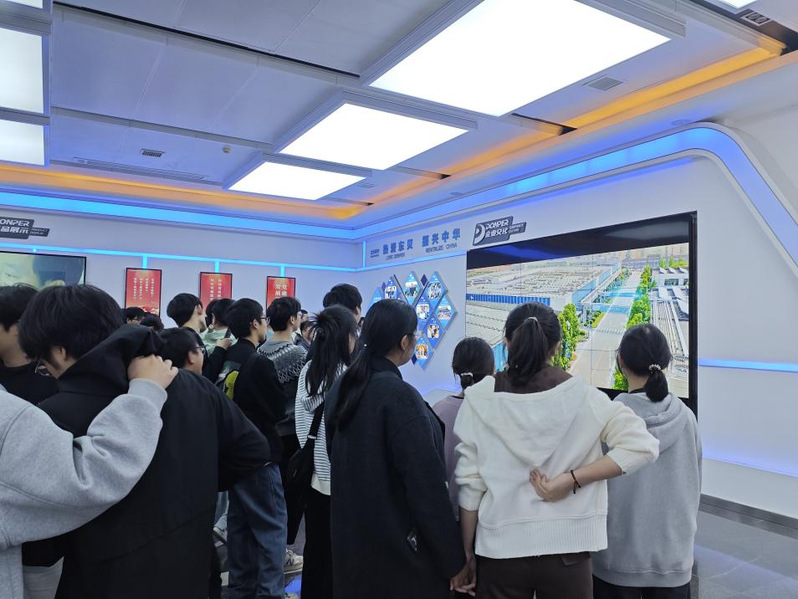同日,肖波老師帶領(lǐng)2403、2404 班學(xué)子首站前往湖北三豐智能輸送裝備股份有限公司,在試驗(yàn)車(chē)間內(nèi),進(jìn)一步通過(guò)實(shí)物觀(guān)摩與講解,了解了工業(yè)機(jī)器人在輸送設(shè)備、智能停車(chē)裝置等場(chǎng)景的具體應(yīng)用邏輯;在自動(dòng)化立體實(shí)驗(yàn)庫(kù)區(qū)域,大家近距離觀(guān)摩了倉(cāng)庫(kù)的全流程運(yùn)行過(guò)程,深入學(xué)習(xí)了智能運(yùn)輸系統(tǒng)的核心原理,直觀(guān)感受到自動(dòng)化技術(shù)在提升物流效率中的關(guān)鍵作用,對(duì)專(zhuān)業(yè)技術(shù)的實(shí)際應(yīng)用場(chǎng)景有了更鮮活的認(rèn)知。隨后,班級(jí)學(xué)子轉(zhuǎn)場(chǎng)至黃石東貝壓縮機(jī)公司,在企業(yè)工作人員的引導(dǎo)下,同學(xué)們先在展廳觀(guān)看了企業(yè)宣傳片,系統(tǒng)了解了東貝壓縮機(jī)在制冷領(lǐng)域的技術(shù)優(yōu)勢(shì)、產(chǎn)品系列及市場(chǎng)覆蓋情況,尤其是在高效節(jié)能壓縮機(jī)研發(fā)方面的成果,讓大家對(duì)專(zhuān)業(yè)與行業(yè)的結(jié)合有了初步感知。